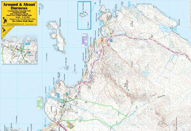 Walking in the Durness area, located on the wild and beautiful north coast of Sutherland in the Northwest Highlands of Scotland, offers dramatic and varied terrain that blends coastal majesty with historic intrigue. The Ceannabeinne Township Trail is a short but fascinating loop through the remains of a pre-clearance Highland village, with interpretation panels revealing the lives of its former residents. Coastal footpaths like the Faraid Head Walk lead across dunes and machair to cliffs overlooking white sandy beaches and the Atlantic, often with views of puffins and seals. The Kyle of Durness Circuit provides a longer, more challenging walk, encircling a tidal inlet and offering glimpses of rare flora and birdlife in this National Scenic Area. |