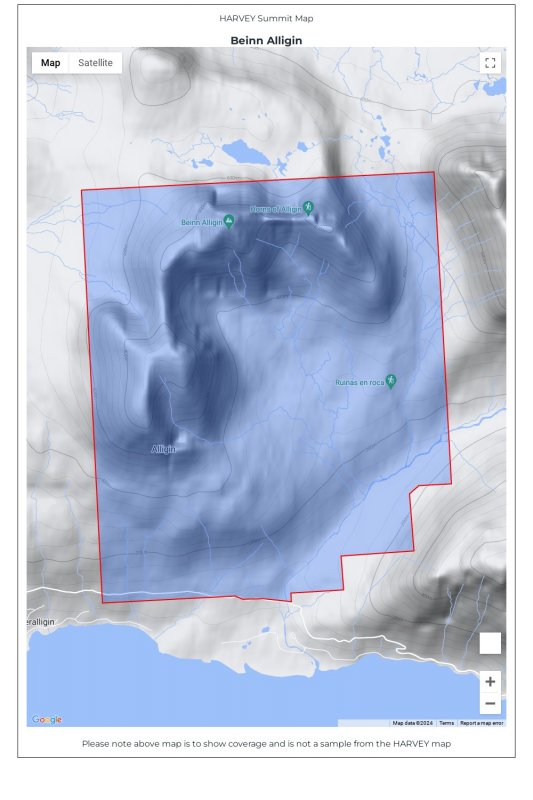 Helps you decipher the detail Enlarged map for hillwalkers of the summit ridge of Ben Alligin at 1:12,500 scale.Size 300x410mm. Covers an area approximately 3x4km. This map of just the summit at a very large scale is intended to provide extra clarity and supplementary detail for a complex piece of terrain. Most commonly it would be used in conjunction with another map of a wider area e.g. the HARVEY Superwalker at 1:25,000 or OS Explorer, which would provide information needed to reach the summit area.The big scale makes it very clear and readable. Useful for detailed navigation in this complex area, particularly in poor conditions. Has a 100m grid for use with GPS.Tough. Light. Waterproof. Extra clear for fine navigation in bad conditions such as mist, darkness or snow