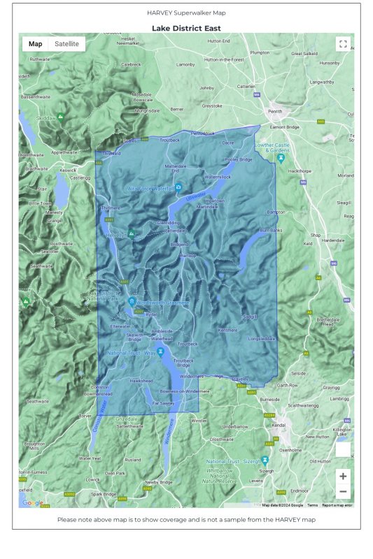 New!! Superwalker XT25 of the Lake District. Revised and re-designed, it's got everything! Genuine original HARVEY mapping at 1:25,000. Clear, easy to read. Easy to re-fold. Opens directly to either side of the sheet. Slim and flexible. Light to carry. Tearproof, durable AND 100% waterproof as standard - no need for a map case. This Lake District East covers everything east of the Kendal Keswick road including Helvellyn, High Street, Kirkstone Pass Ullswater, Haweswater and Kentmere |